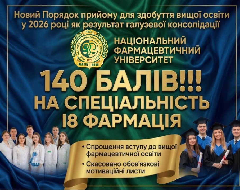 Цьогорічна вступна кампанія у фармацевтичні виші ознаменована фундаментальними змінами у Порядку прийому, що стали результатом системної та фахової роботи Національного фармацевтичного університету (НФаУ).